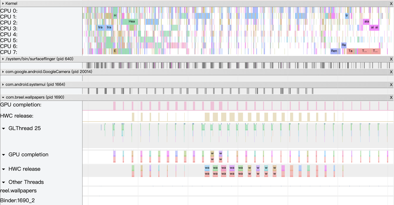 解析后的 Systrace 由于有大量的系统信息,天然适合分析 Android App 和 Android 系统的性能问题, Android 的 App 开发者、系统开发者、Kernel 开发者都可以使用 Systrace 来分析性能问题。
