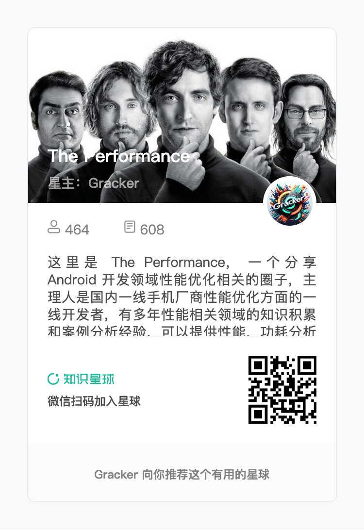 8. Android 性能优化知识星球 : 个人运营的一个知识星球,欢迎加入,多谢支持~